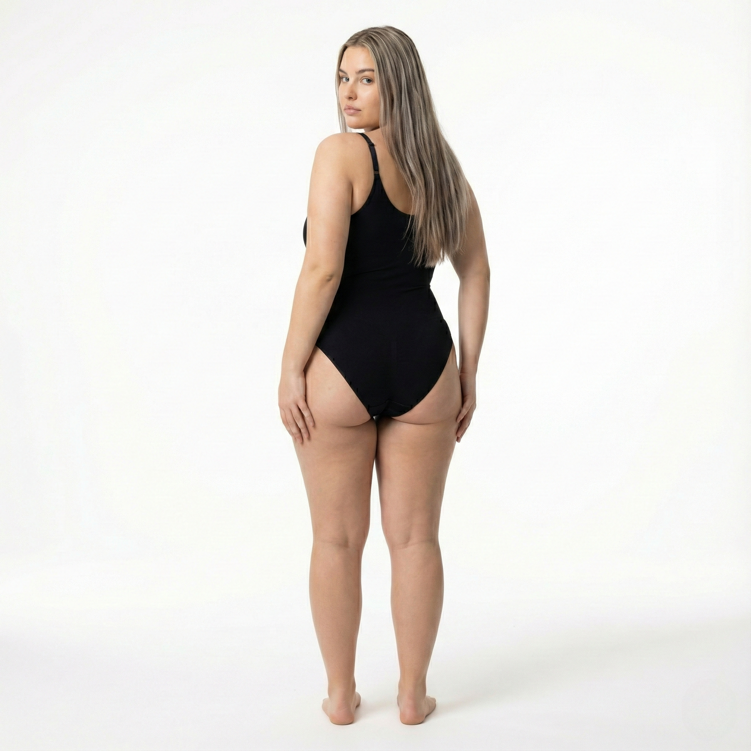 Il body modella senza “strizzare”: la compressione è graduata, studiata per sostenere pancia e fianchi mantenendo il tessuto morbido e traspirante. Puoi indossarlo tutto il giorno come un normale intimo, senza segni rossi o sensazione di costrizione.